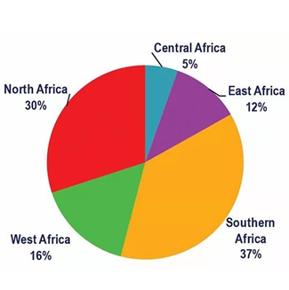 中非貿(mào)易研究中心分析,北非和南部非洲在非洲地區(qū)進口水平最高。南部非洲在進口家具消費中所占份額最高,占37%,而北非的進口消費占30%。