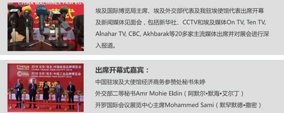 第三屆中國(埃及)貿(mào)易博覽會(huì) 于 2016 年 8 月 25 日在開羅國際展覽中心容重開幕。該展會(huì)是目前中國在埃及舉辦的規(guī)模最大的展會(huì)。