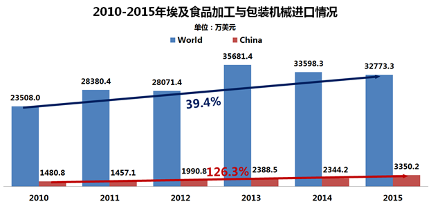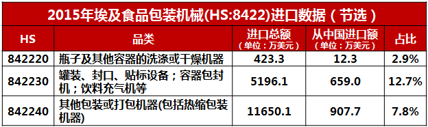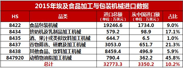 1、埃及的食品加工與包裝機(jī)械市場(chǎng)規(guī)模巨大,2015年進(jìn)口額高達(dá)3.28億美元。