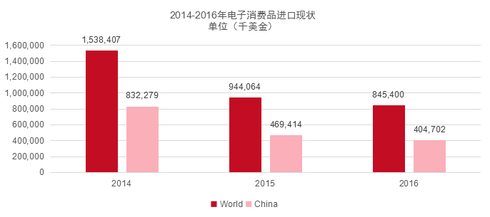 2016年哈薩克斯坦電子消費品從世界進口總額為8.46億美元,其中自中國進口4.04億美元,占比47.84%。熱銷產(chǎn)品進口量前三名的分別為手機類、電腦類、無線電設(shè)備零件等。