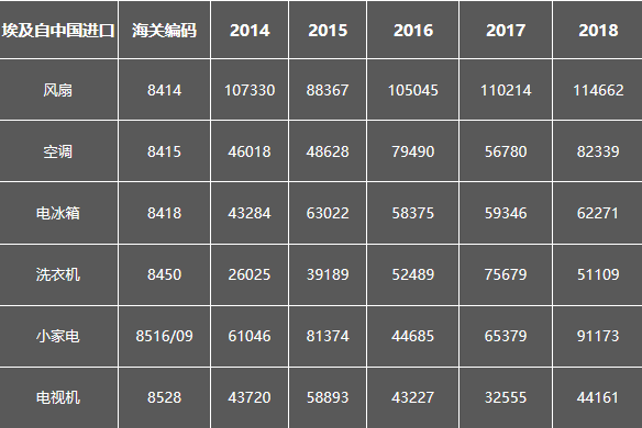 風(fēng)扇與小家電為埃及進(jìn)口的主要家電品類: