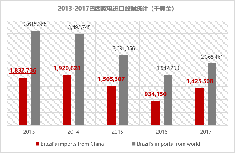 近五年巴西家電進(jìn)口數(shù)據(jù):