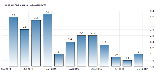 據《約旦時報》報道,約旦預算部將按照原油60美元/桶、GDP增長3.7%的指標來制定2016年的政府預算。據預算部估算,約旦2016年通脹率為3.1%,2017年為2.4%,2018年為2.1%,出口增加5%。進口增加2.5%。另外,WTO下調2015年約旦GDP增速預期至2.5%,IMF下調預期至2.9%。