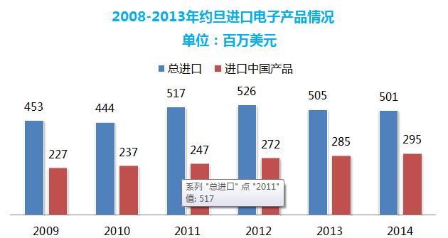 約旦進口的主要電子產品中,手機和電腦占據了最大的板塊,大約80%,這也為電腦周邊產品及手機零配件等提供了巨大市場空間。