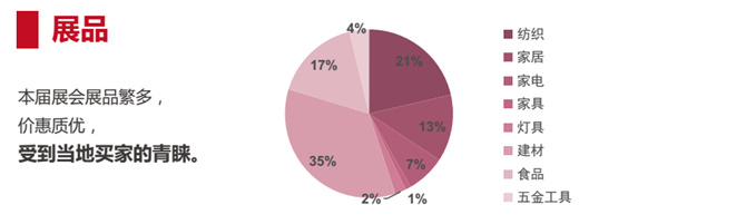 此次展會展出面積10000 平方米,展品20000 多種,展商200 家,累計成交額高達3473萬美元。展會吸引了來自約旦及周邊多個國家的 8533名專業(yè)觀眾前來參觀、洽談和采購。